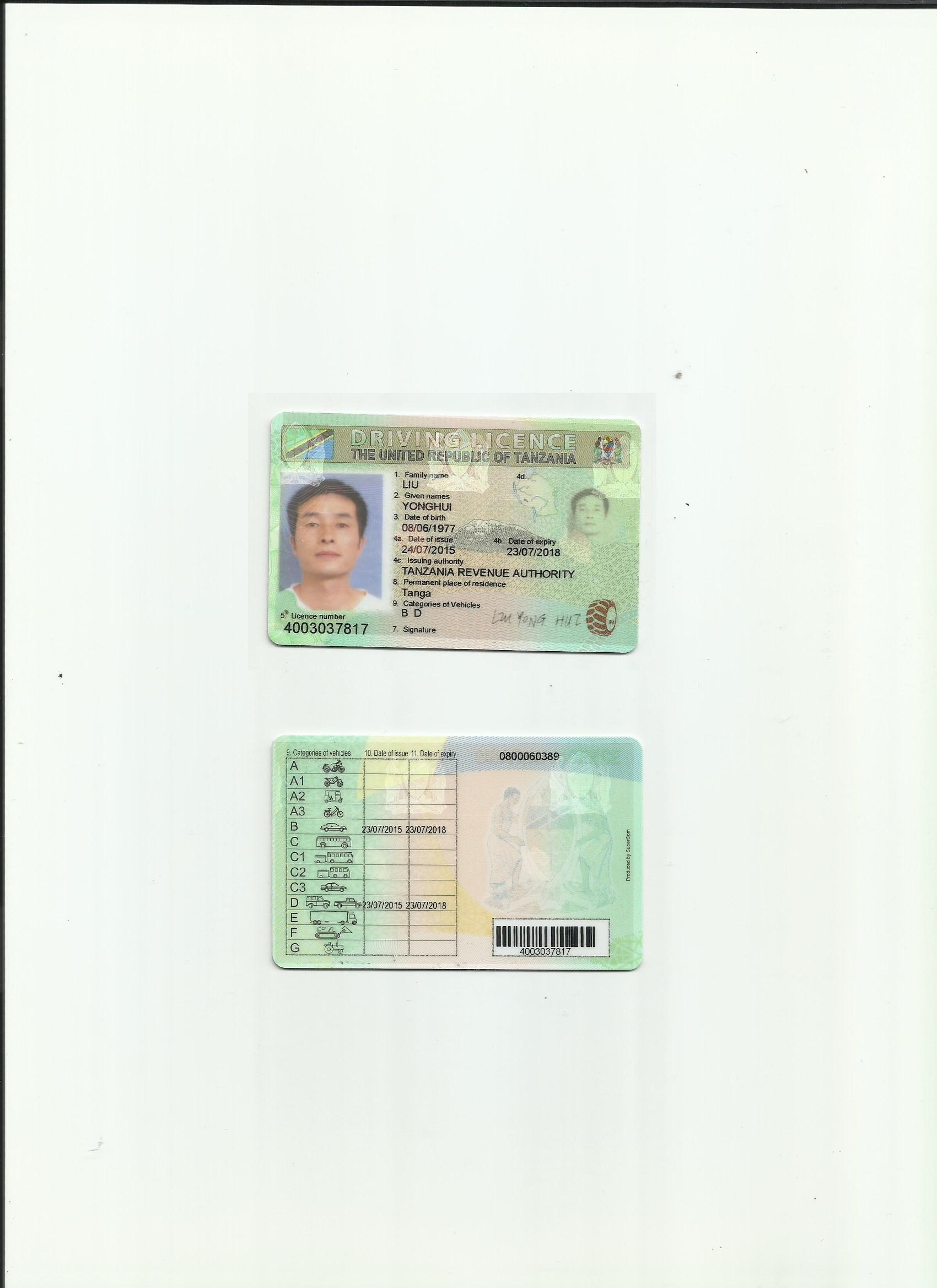 坦桑尼亞駕照翻譯模版-咸陽市駕照翻譯-車管所認可翻譯機構