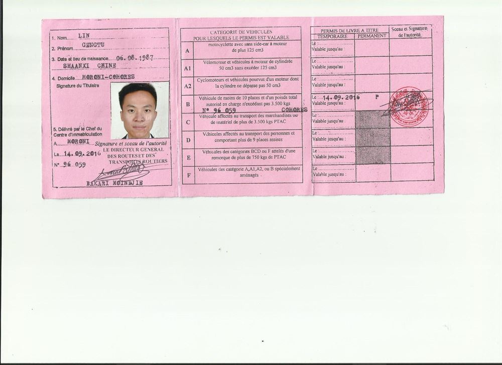 非洲國家-科摩羅駕照翻譯模版-咸陽-西安-車管所認可翻譯機構(gòu)-隨到隨譯