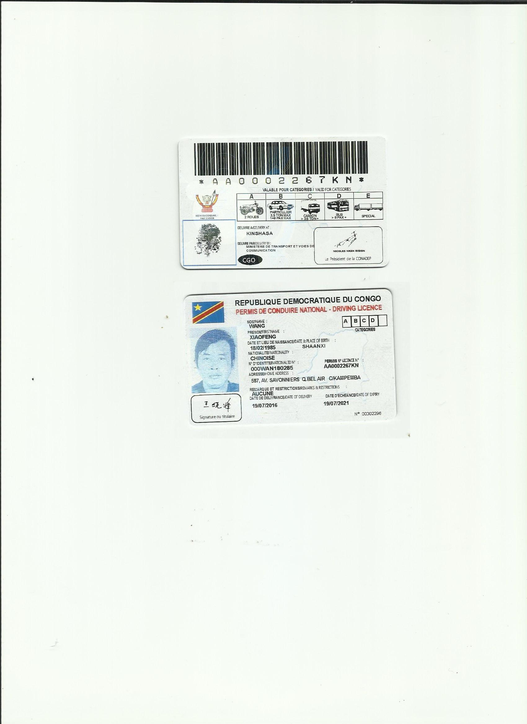 剛果金駕照翻譯模版-咸陽市車管所認可翻譯機構(gòu)