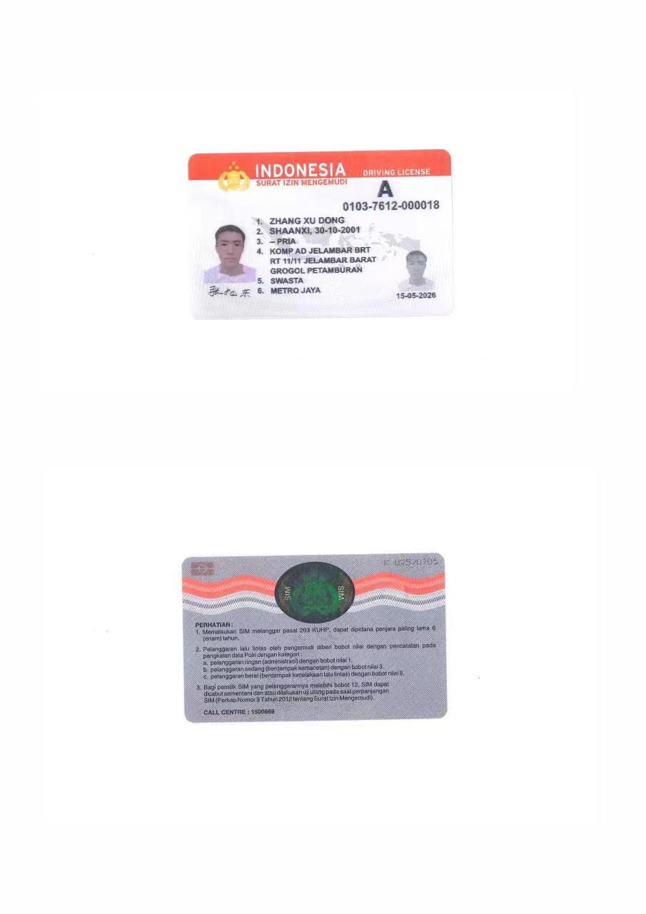咸陽(yáng)證件翻譯蓋章 成績(jī)單翻譯 戶口薄翻譯 駕照翻譯 印尼駕照翻譯模版