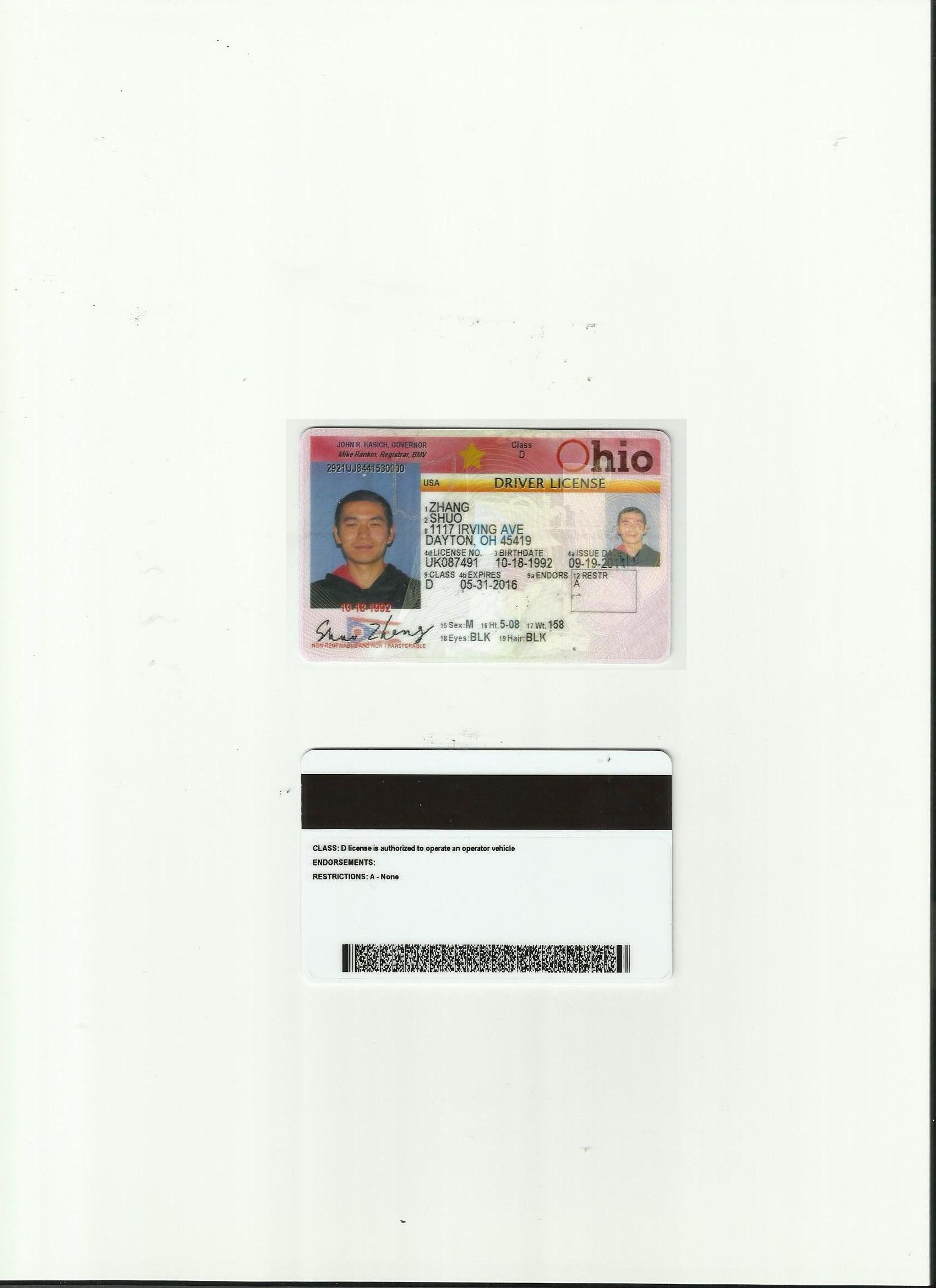 美國俄亥俄州駕照翻譯模版-咸陽翻譯